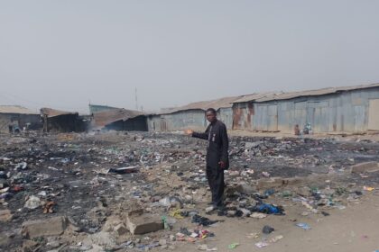 Makata, the former Chairman showing the burnt area of the market to…